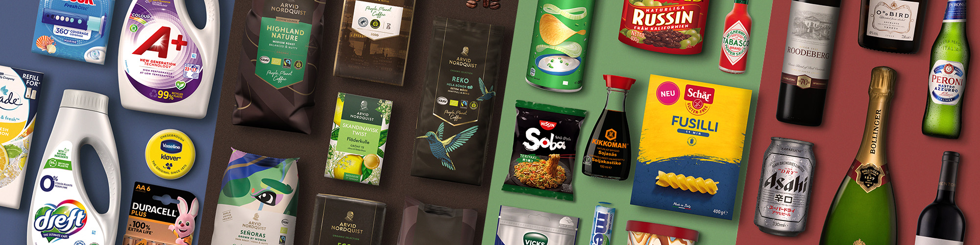 We have sales and marketing organisations in all four Nordic countries. We focus on all channels in which food is sold, and we conduct more than 100,000 sales visits per year. Our portfolio comprises brands that we own, develop and produce ourselves, plus brands that we represent. Our customers are primarily the Nordic grocery sector, including alcohol monopolies, the restaurant sector, and pharmacies, offices, retail, and discount stores. We also serve the brand owners of the brands we represent.