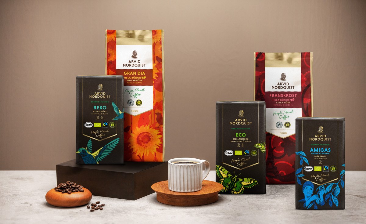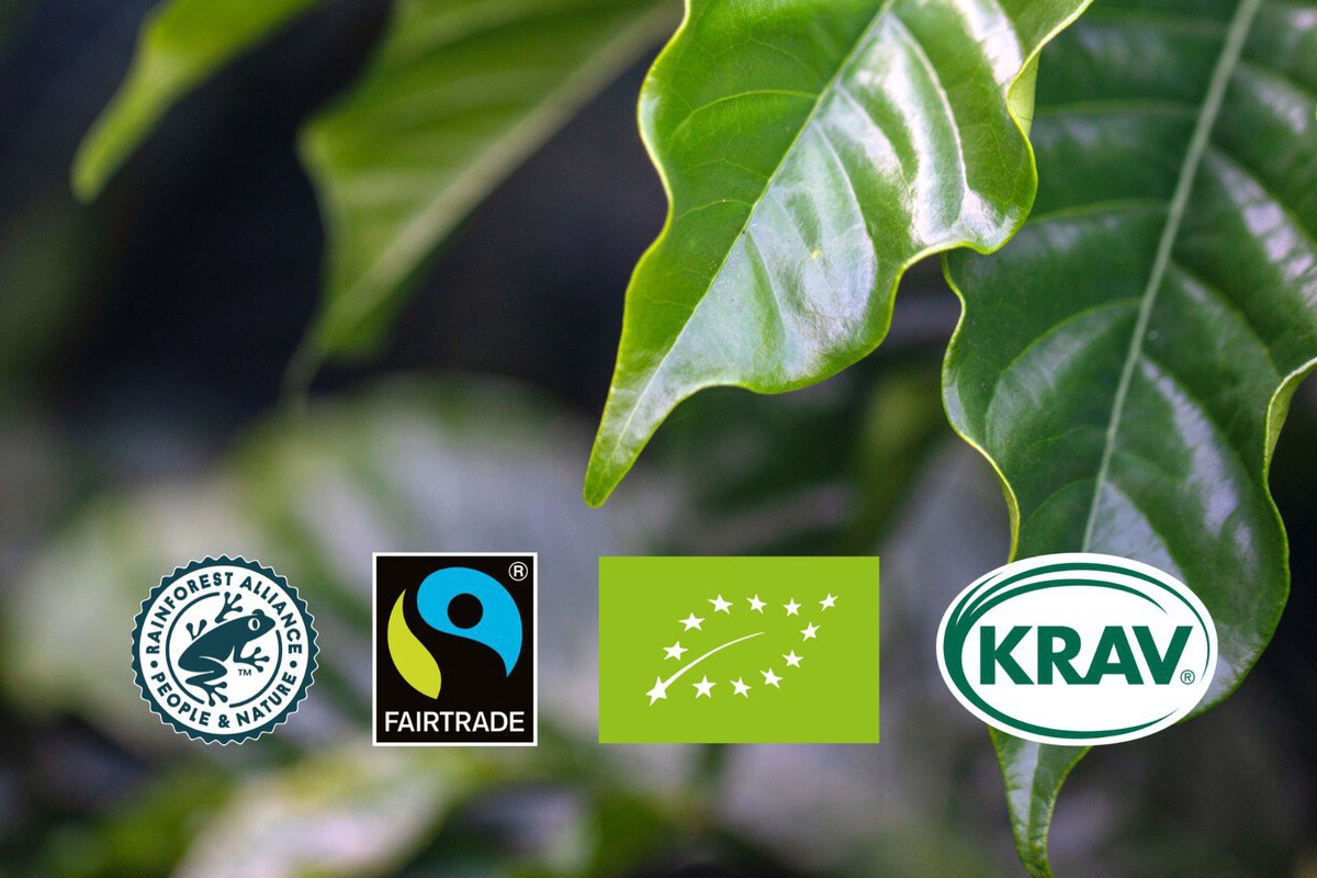 Our coffee is always made from 100% Arabica beans – carefully selected by our buyers and gently roasted in our coffee roastery in Järfälla. But our care goes far beyond taste. Coffee is part of a larger chain, which is why we nurture long‑term relationships with cooperatives and farm owners. We purchase only coffee certified by either Rainforest Alliance or Fairtrade, and our organic range is also certified by the EU Organic and KRAV. We roast our coffee using biogas and package it in plant‑based material.