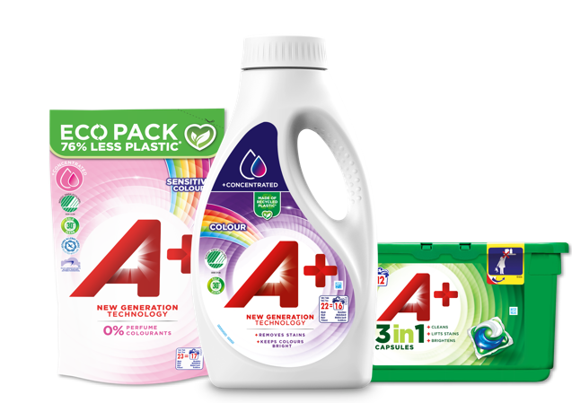 A+ offers a wide assortment of effective laundry products that gives you a great result even in low temperatures. Good for you, your clothes and the enviroment.